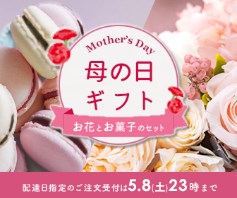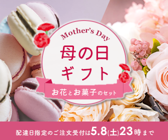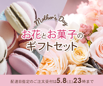 | テキスト | Mother’s Day お花とお菓子のギフトセット 配達日指定のご注文受付は5月8日土曜日23時まで |